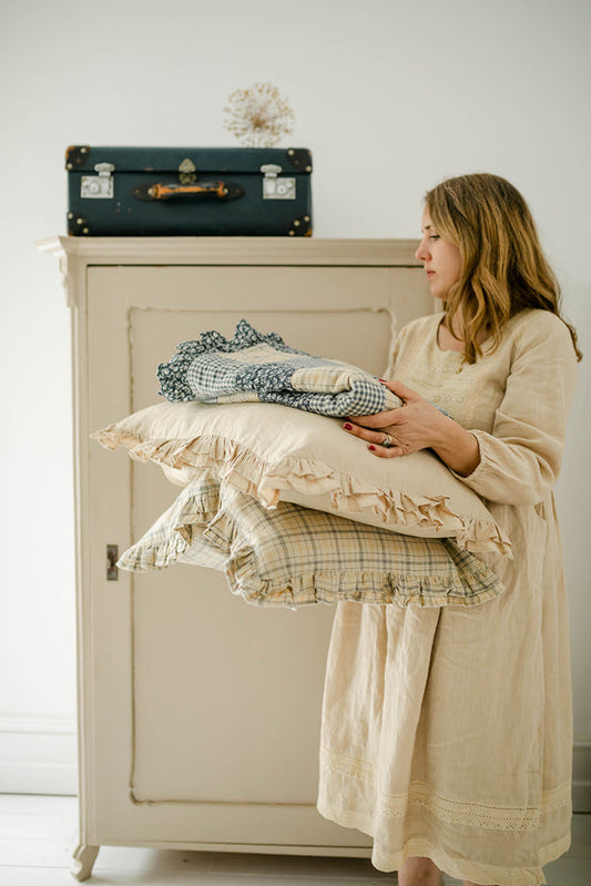 Little Cotton Clothes Double frill Pillowcase - linen in nutmeg